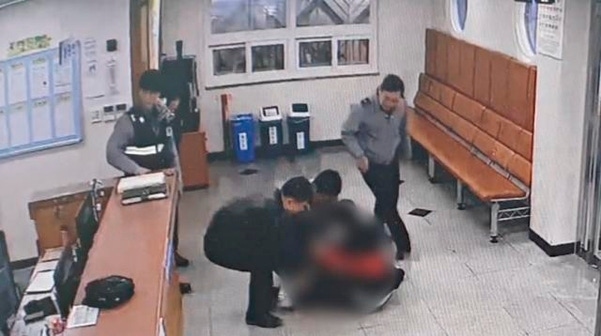 조 경위는 먼저 아이가 입고 있던 겉옷부터 벗겼다. 그사이 강철희(60) 지구대장도 자리에서 뛰쳐나와 아이 엄마에게 아이를 받았다. 강 대장은 아이의 몸을 뒤집은 채, 왼손 손바닥 위에 아이의 가슴팍을 받혔다. 이어 오른손으로 양 날개뼈 사이를 ‘탁탁' 세게 쳤다. 막힌 이물질로 기도가 막힌 아이에게 하는 응급조치 ‘하임리히 요법'을 실시한 것이다. 그사이 다른 동료들은 119 구급대에 신고했다.